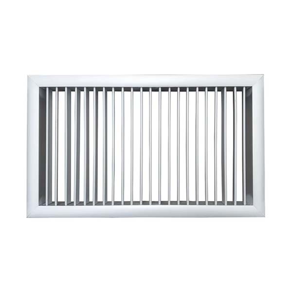 Rejilla de barras fijas en aluminio. Disponible en ángulo 0° o 15°. Distribución uniforme y diseño moderno. |