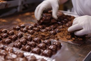 Ventilación industrial para chocolaterías. Control preciso de temperatura y humedad para procesos de templado, moldeo y almacenamiento que garantizan textura y sabor óptimos.